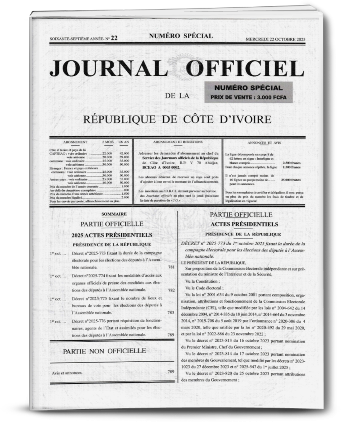Journal Officiel N°22 Spécial du Mercredi 22 Octobre 2025 ( Cote d’Ivoire)