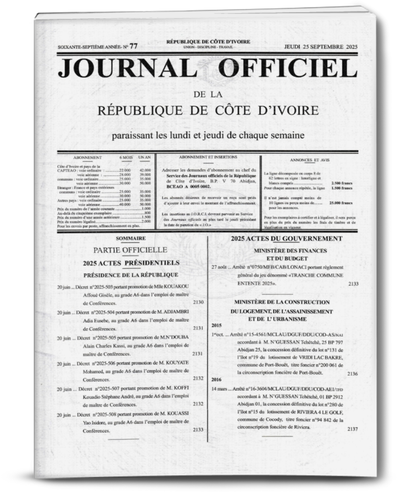Journal Officiel N°77 du Jeudi 25 Septembre 2025 (Cote d’ivoire)