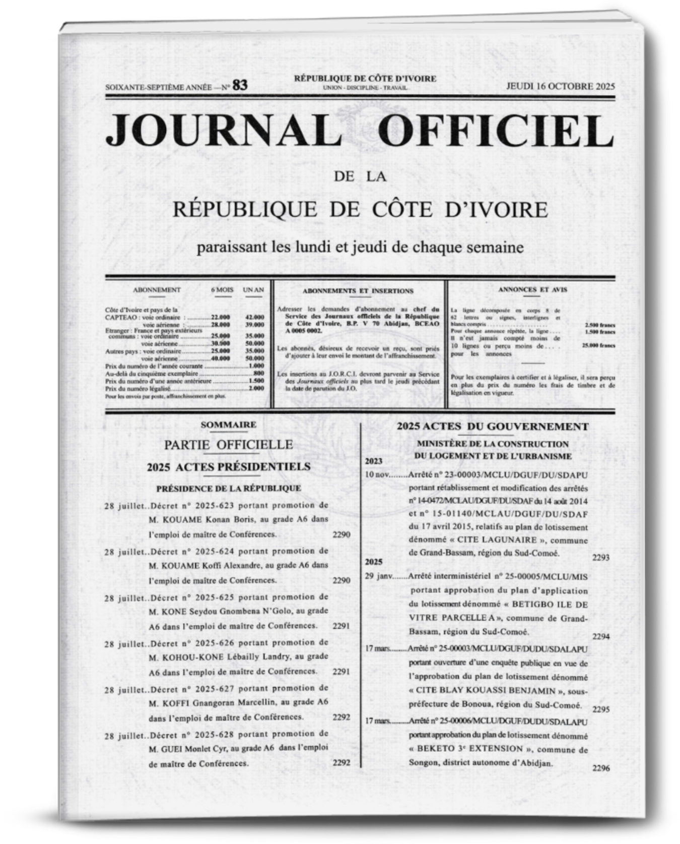 Journal Officiel N°83 du Jeudi 16 Octobre 2025 (Cote d’ivoire)